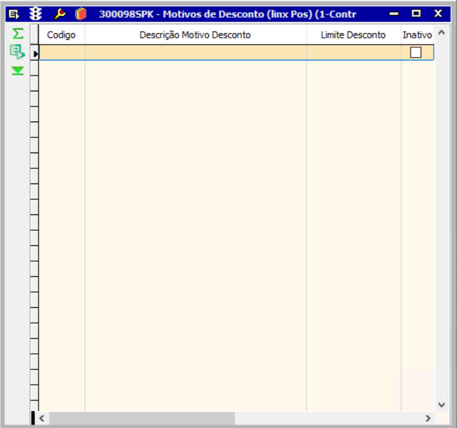 1. Acesse a tela 300098 - Motivos de Desconto.