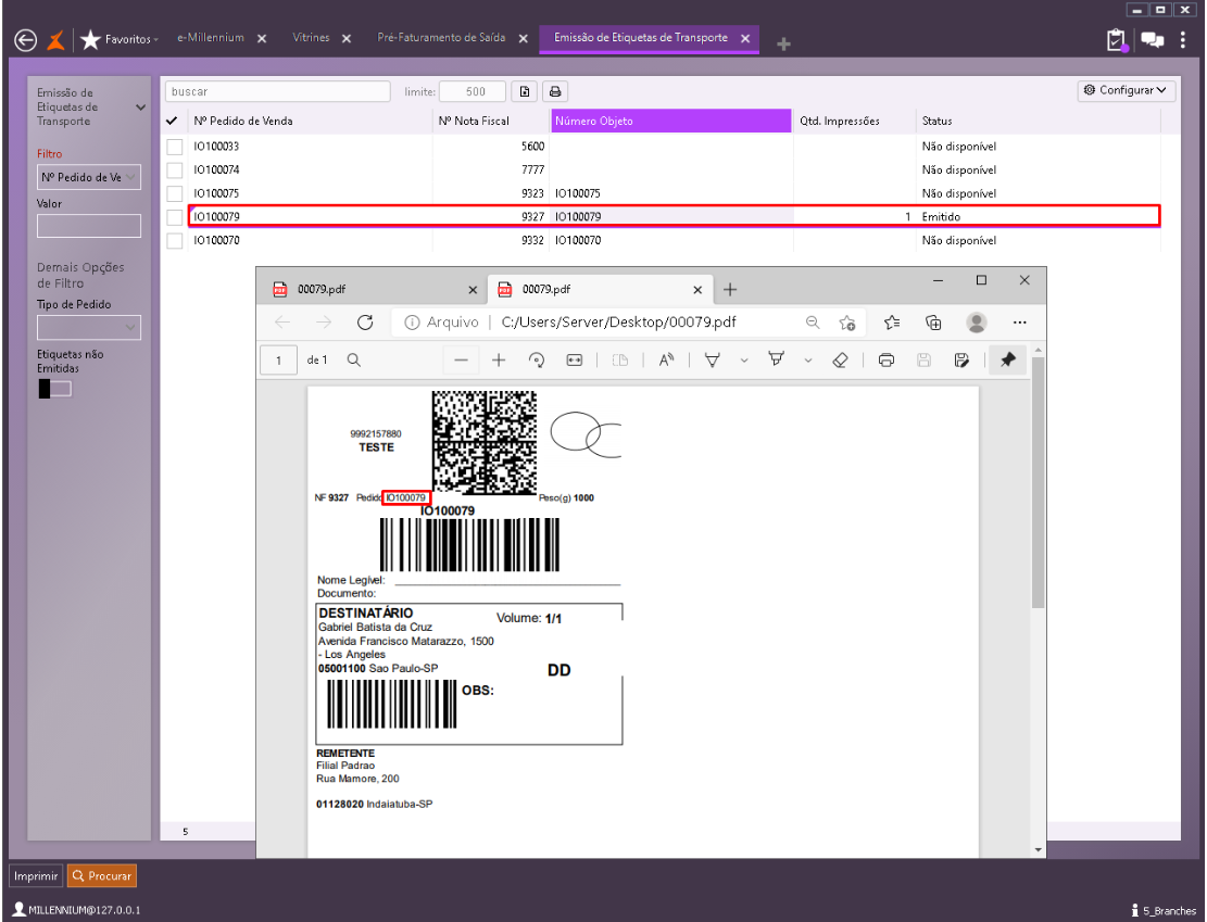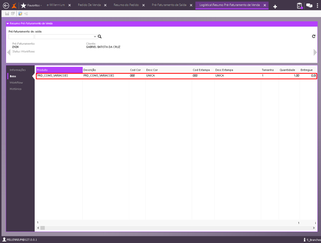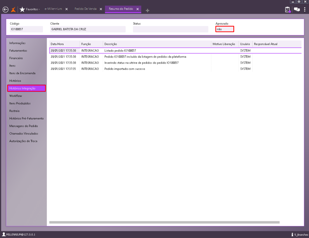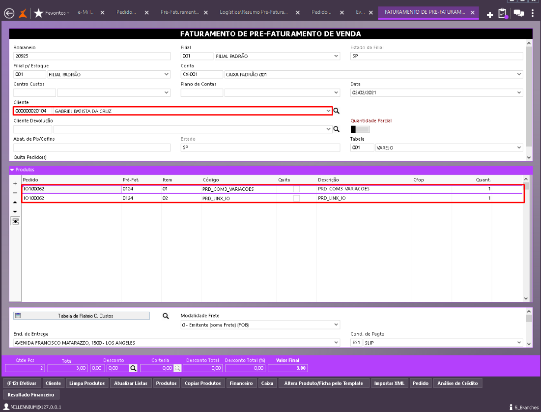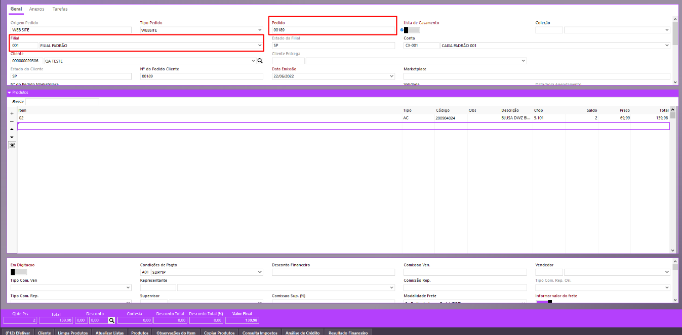 -Pedido realizado no Commerce utilizando a filial 1_1