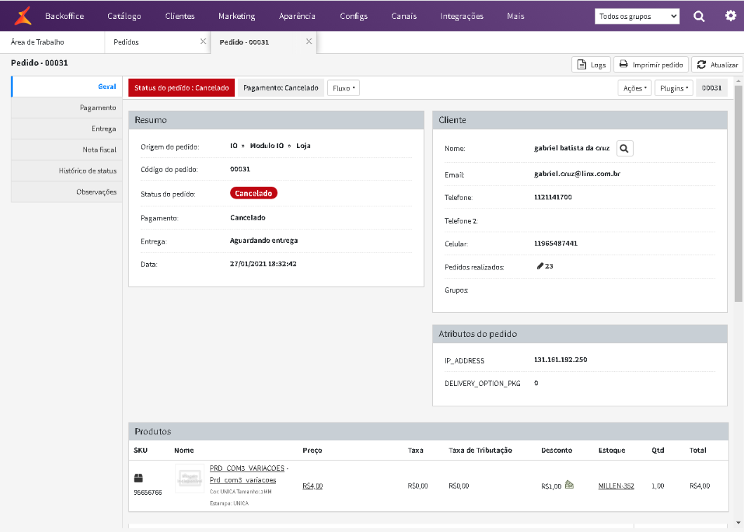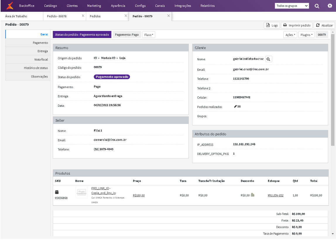 - A integração de pedidos com o Linx IO, contempla a importação de pedidos pagos para o CD.