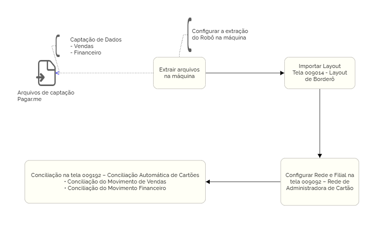 Demonstração do fluxo de conciliação dos arquivos de Vendas e Financeiro.