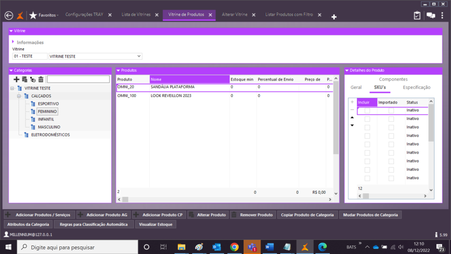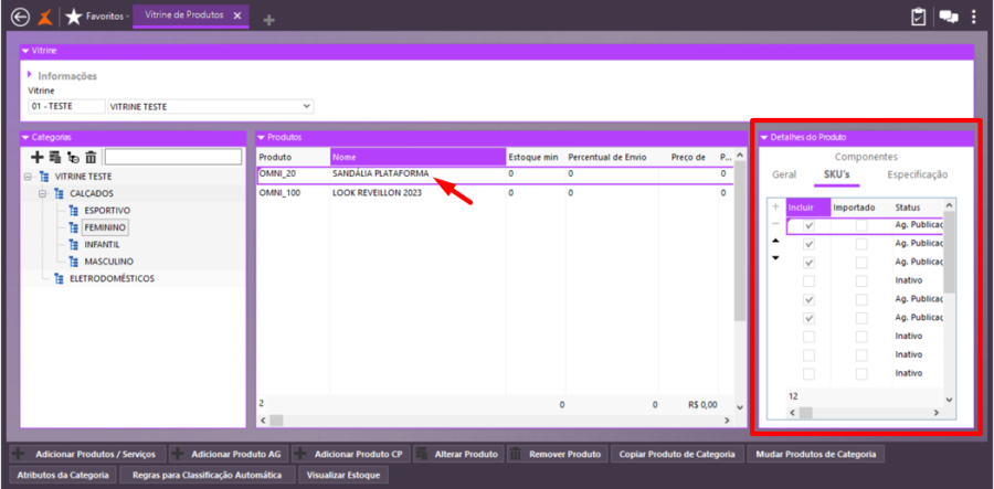 Perceba que nos detalhes dos produtos os skus estão sendo exibidos como inativos.