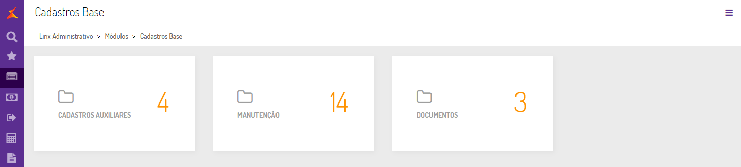 Linx Administrativo > Módulos > Cadastros Base