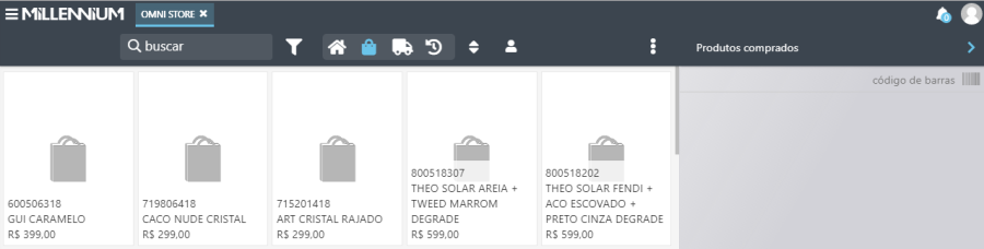 Aguarde o sistema carregar a tela de vendas com os produtos e as opções de operações.