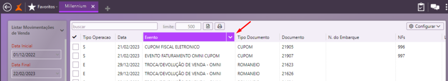 Se for necessário, o usuário poderá congelar as colunas do resultado de uma consulta específica, para analisar suas informações. Porém, esse congelamento perderá o efeito assim que a tela de resultado for fechada, uma vez que é um recurso específico da listagem apresentada e não da parametrização da tela.