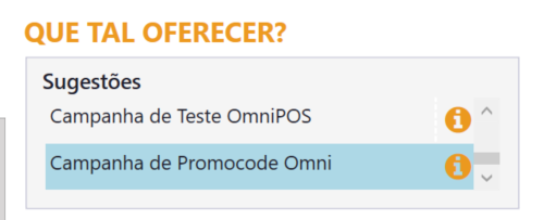 Implementado no Linx OmniPOS a consulta de campanhas ativas do Linx Reshop para o cliente, e são exibidas no campo "Sugestões".