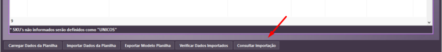 Na tela de importação de planilhas foi criado um link para fazer a consulta das importações realizadas, onde serão visualizados os usuários, data e hora das importações.