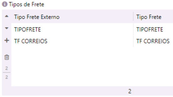 Na Tabela de Tipos de Frete é feito o mapeamento dos tipos de frete da plataforma de e-commerce com os do e-Millennium GO, ou seja, um DE-PARA da forma como o tipo de frete é descrito (nominado) pela plataforma (e enviado no pedido), com o tipo de frete correspondente no ERP.