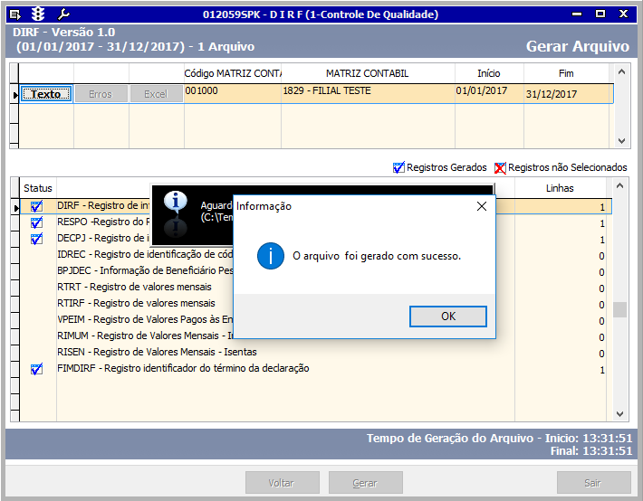 Identifica os registros que foram gerados com sucesso.