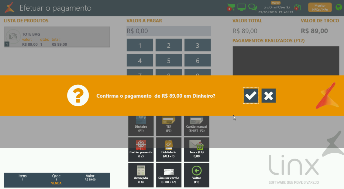 9) Então, escolha o tipo de pagamento para conclusão da venda.