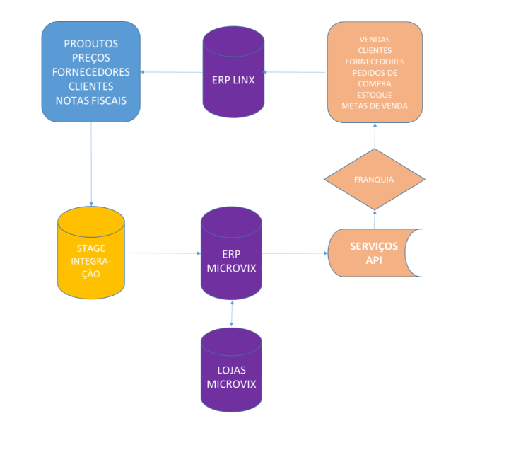 A integração entre os produtos Microvix e LinxERP tem como benefício principal a total integração de clientes, fornecedores, vendedores, produtos e estruturas mercadológicas, movimentações de estoque, vendas, entradas, inventários, devoluções, trocas, regras fiscais, integração de configuração tributária, sped fiscal e contabilidade. Esta integração garante a troca de informações entre os sistemas, permitindo aos usuários manterem os sistemas sincronizados e atualizados. Além disso, alguns cadastros possuem integração com fluxo único, ou seja, apenas uma base emissora e uma base receptora. Esta clareza na informação simplifica o processo de trabalho, pois os dados não precisam ser duplicados ou migrados entre os sistemas.
