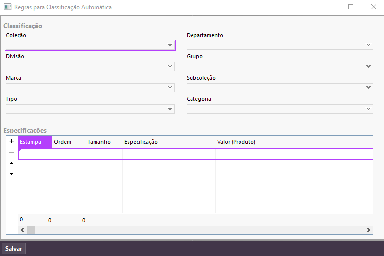 - Na janela que será aberta, selecione as classificações que entrarão na regra;
