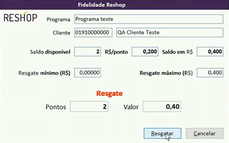 Quando o sistema inserir esses pontos de resgate na venda, será convertido em R$ (reais) e terá dois tipos de pagamento, um de brindes / doação promocionais e o outro conforme a escolha do cliente.