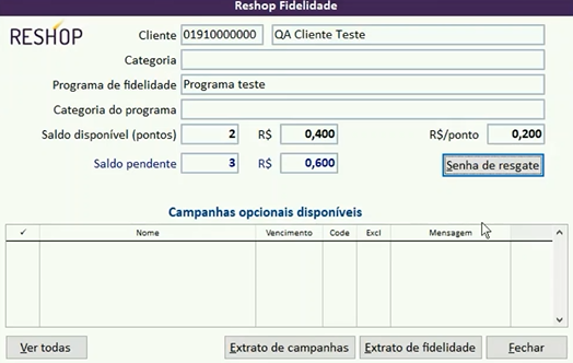 Veja no vídeo a seguir um exemplo de Venda com resgate Fidelidade: