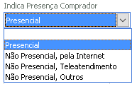 Quando o campo Indica Presença Comprador estiver selecionado com uma das opções (Não presencial, pela internet / Não presencial, teleatendimento / Não presencial, outros), o CFOP relativo à venda fora do Estado será gerado, isto é, serão habilitadas para a nota fiscal somente as Natureza de Operação = 6, que indicam venda para fora do Estado.