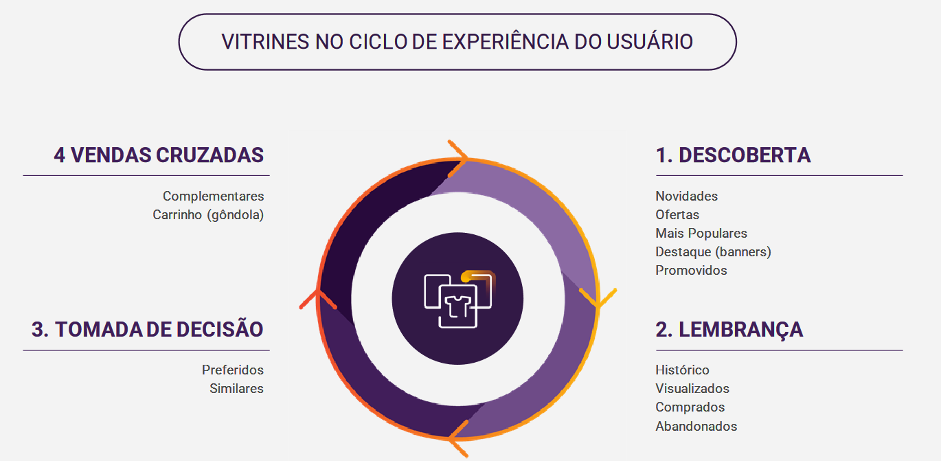 Transforme seu e-commerce em uma loja única para cada consumidor através de vitrines e recomendações personalizadas.