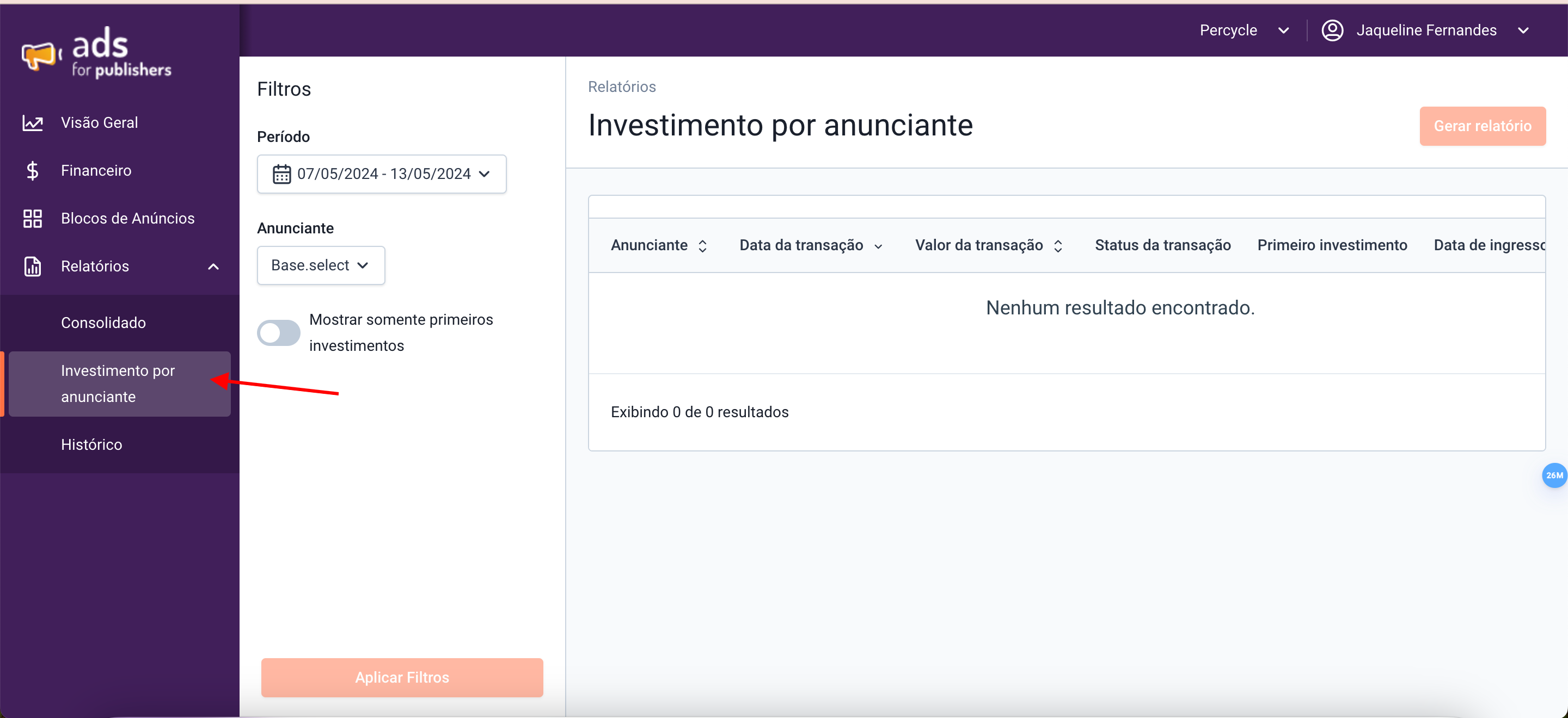 Este relatório tem como objetivo exibir todas as informações/métricas relacionadas ao valores investidos por determinado anunciante em seu varejo. É possível ter uma visão de todas as transações financeiras que foram efetuadas por todos os seus anunciantes no período.