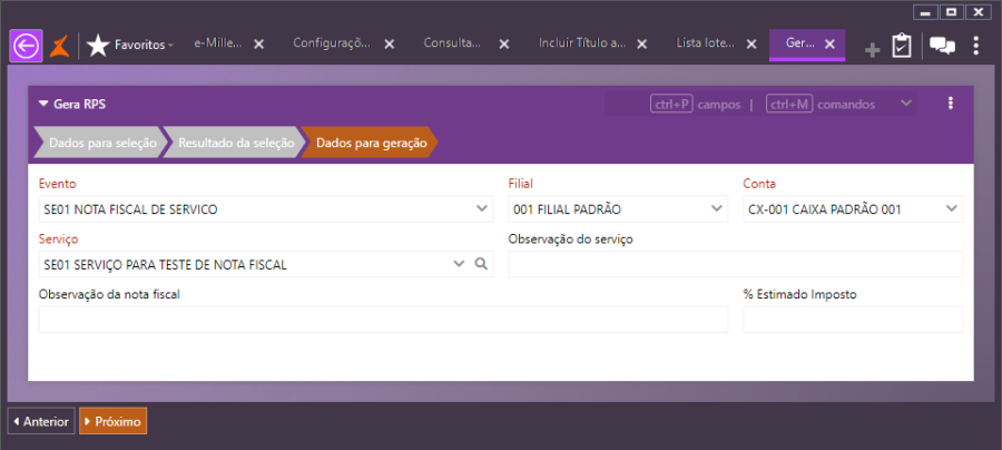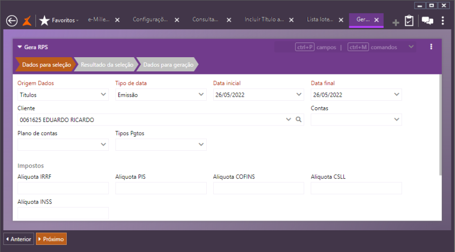 Para gerar o arquivo de RPS, observe as etapas abaixo: