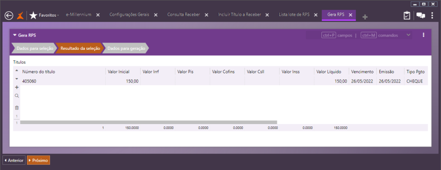 - Clique em Próximo mais uma vez. O lote estará listado na tela Lista Lote de RPS.
