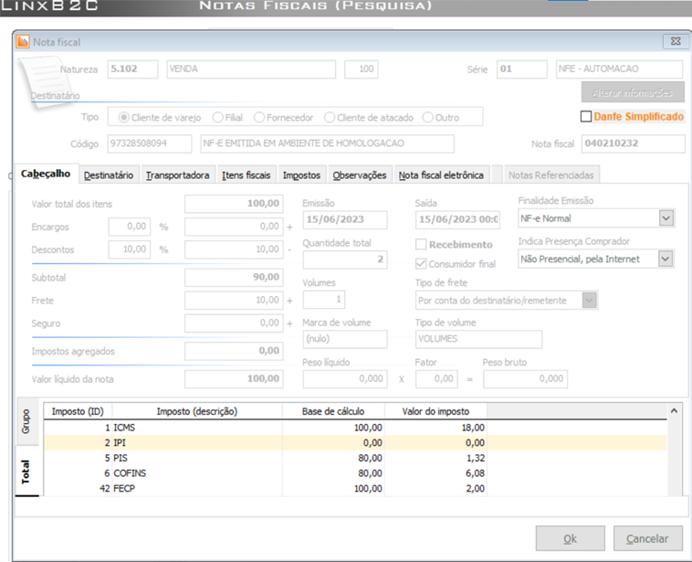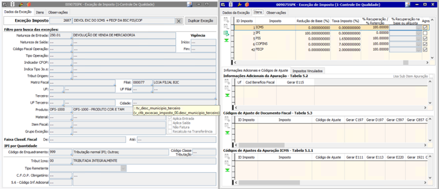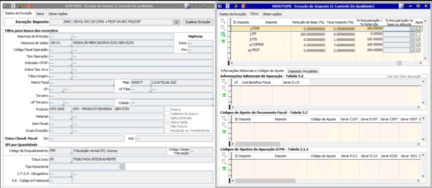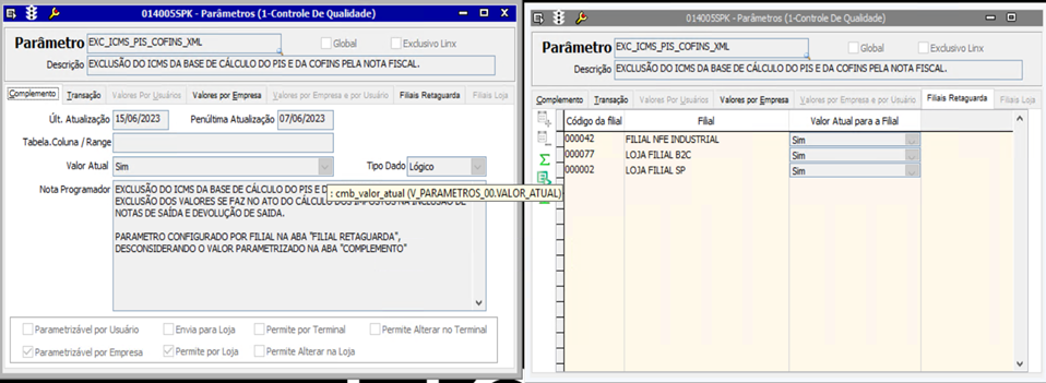 | Descrição | Adequação para atender a Medida Provisória que normatiza a exclusão do ICMS e FECP da Base de cálculo do Pis e da Cofins | ||