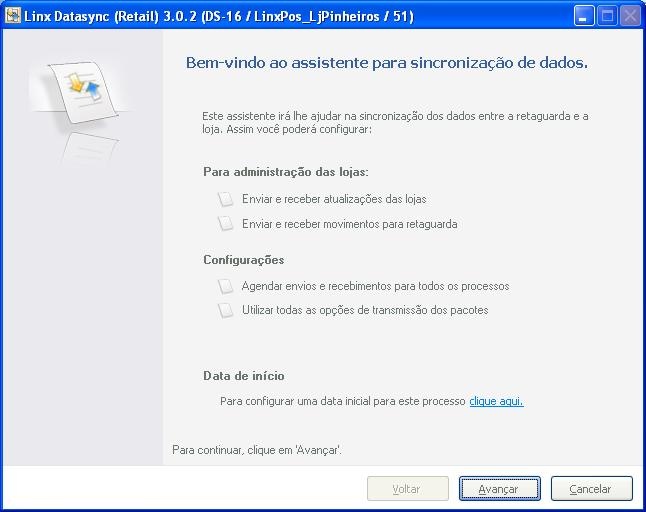 Esta informação pode ser verificada pelo pacote que está localizado pasta C: \Arquivos de programas\Linx Sistemas\Linx Datasync (Retail)\Packages.