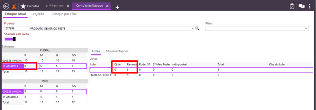 Consulta do estoque do produto com reserva do pedido de venda