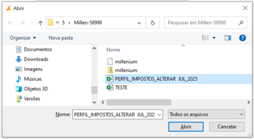 Millen-58996 - Alterar e atualizar perfis de impostos por planilha