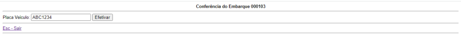 No coletor de dados, em Expedição, selecione a opção Conferir Embarque. Na tela de lista de embarques para conferir, vamos selecionar nosso exemplo 000103.