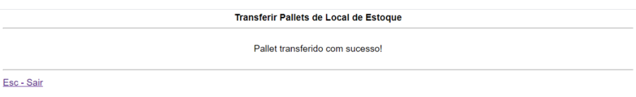 Após a transferência, se o usuário tentar fazer uma nova transferência com o mesmo local de origem, o sistema emitirá uma mensagem de alerta informando que não há pallet no local selecionado.
