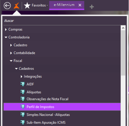 O Perfil Fiscal no e-Millennium considera os seguintes dados do produto: