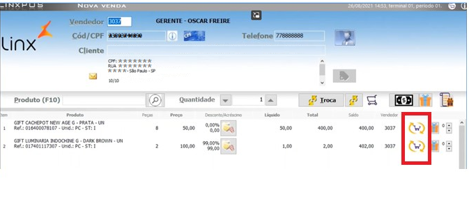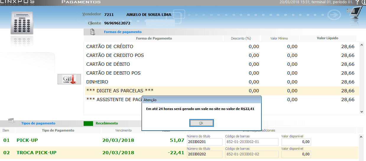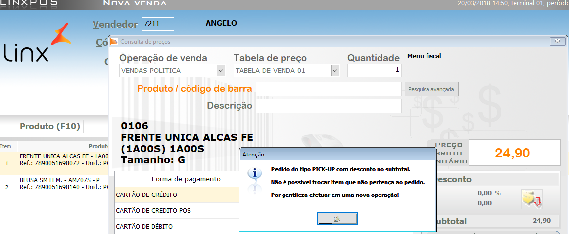 OK, novamente será exibida a tela para efetuar a nova venda.