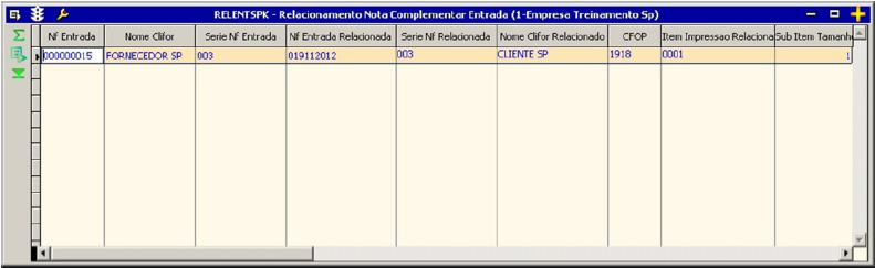 4. Na coluna NF Entrada Relacionada, selecione a nota de origem que está sendo complementada.