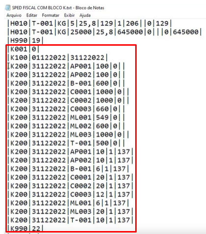 Visualizado o Arquivo gerado Bloco K200