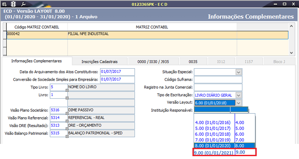 LINXERP-5135 | Escrituração Contábil Digital ECD Leiaute 9