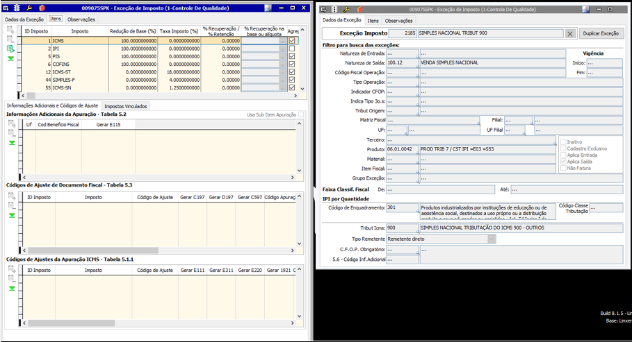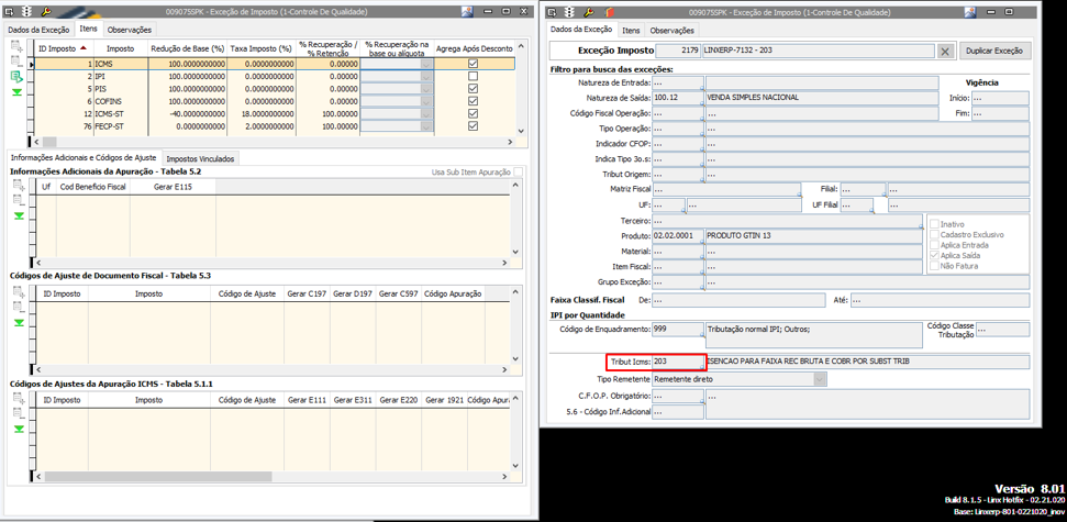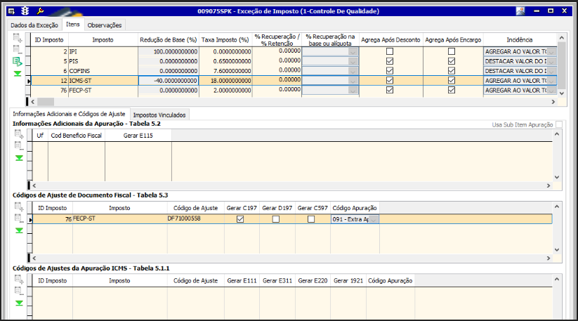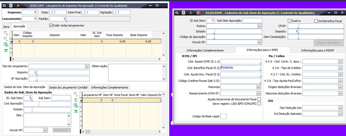 LINXERP-7541 | PI | Códigos de Ajuste EFD-ICMS