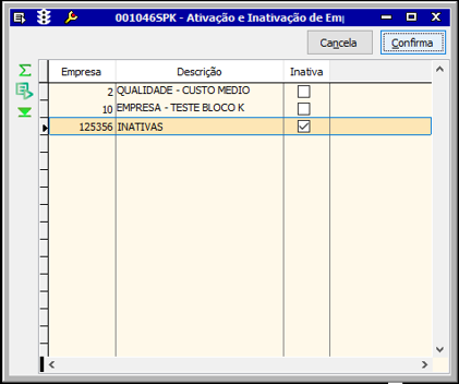 Clique para acessar a documentação completa da tela 001046 - Ativação e Inativação de Empresa.