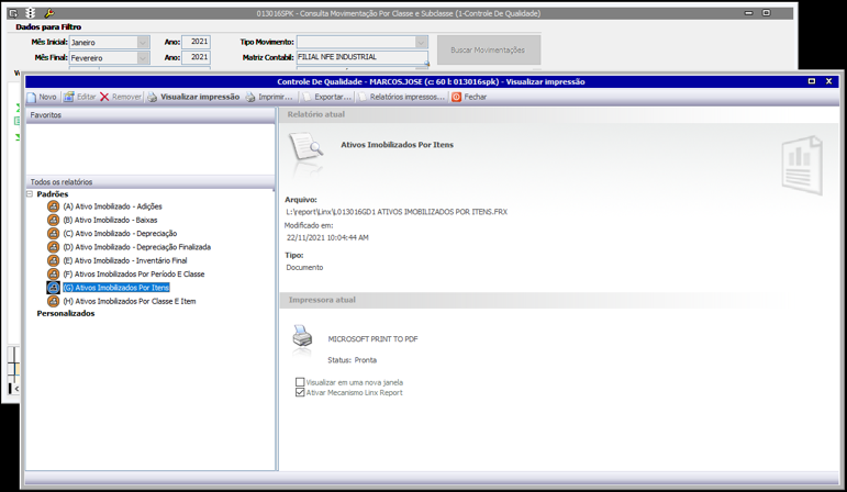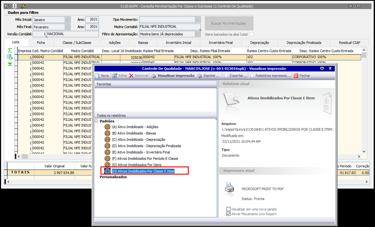 LINXERP-7515 | Relatório de Movimentação de Ativos com valores por Imobilizado