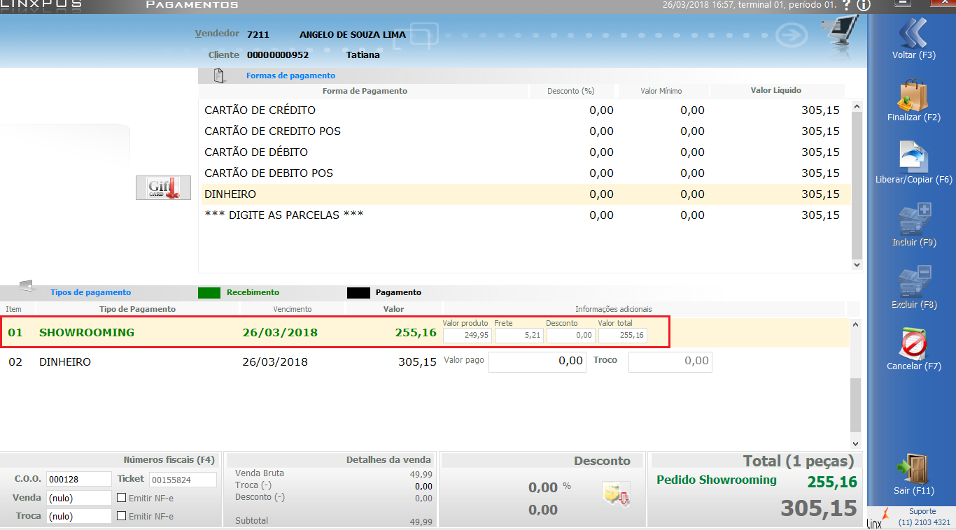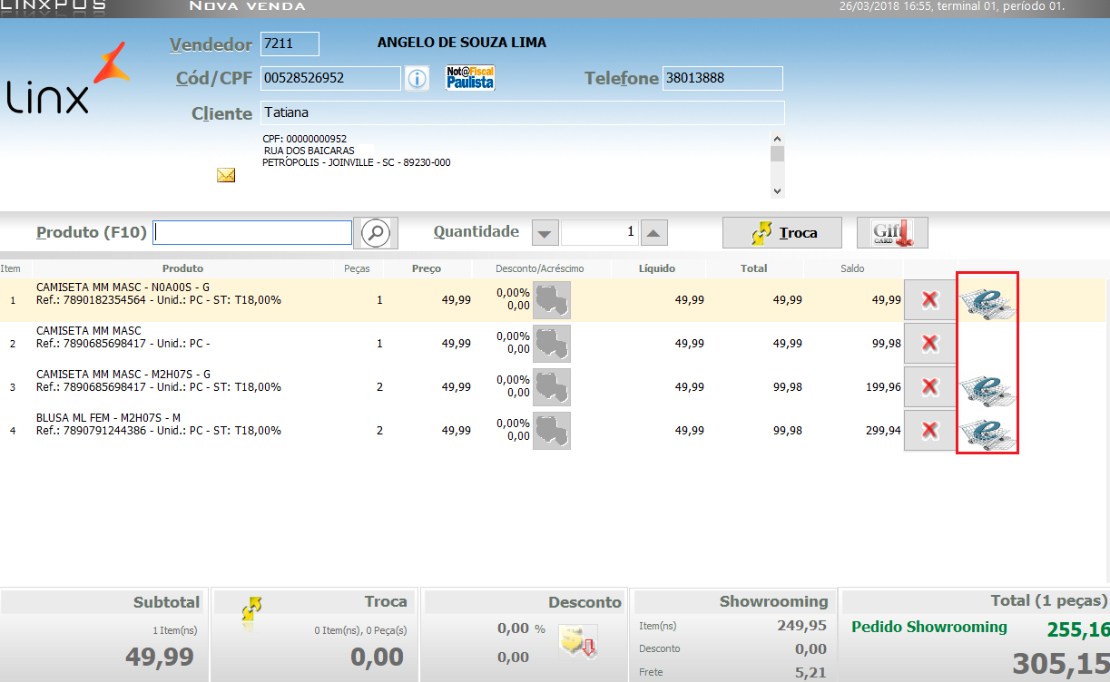 Efetuando venda de um pedido Showrooming