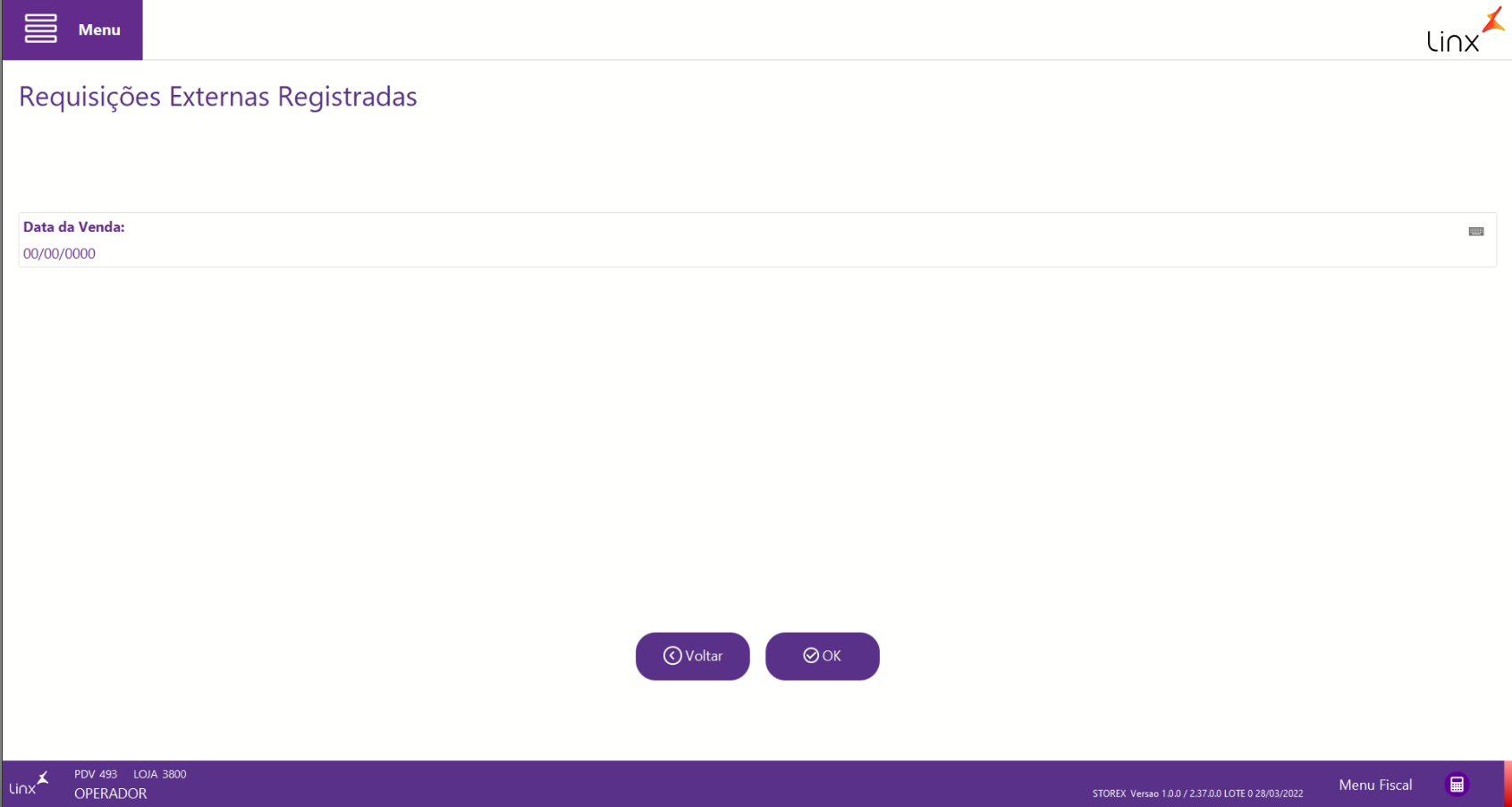Opção 4 - Requisições Externas Registradas Nesta opção é gerado arquivo com dados de pré-vendas que foram realizadas em uma data especifica. Ao finalizar geração, PDV armazena o arquivo gerado no diretório \p2k\bin\temp. | |