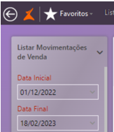 Os campos de filtros estão localizados à esquerda das telas de consultas.