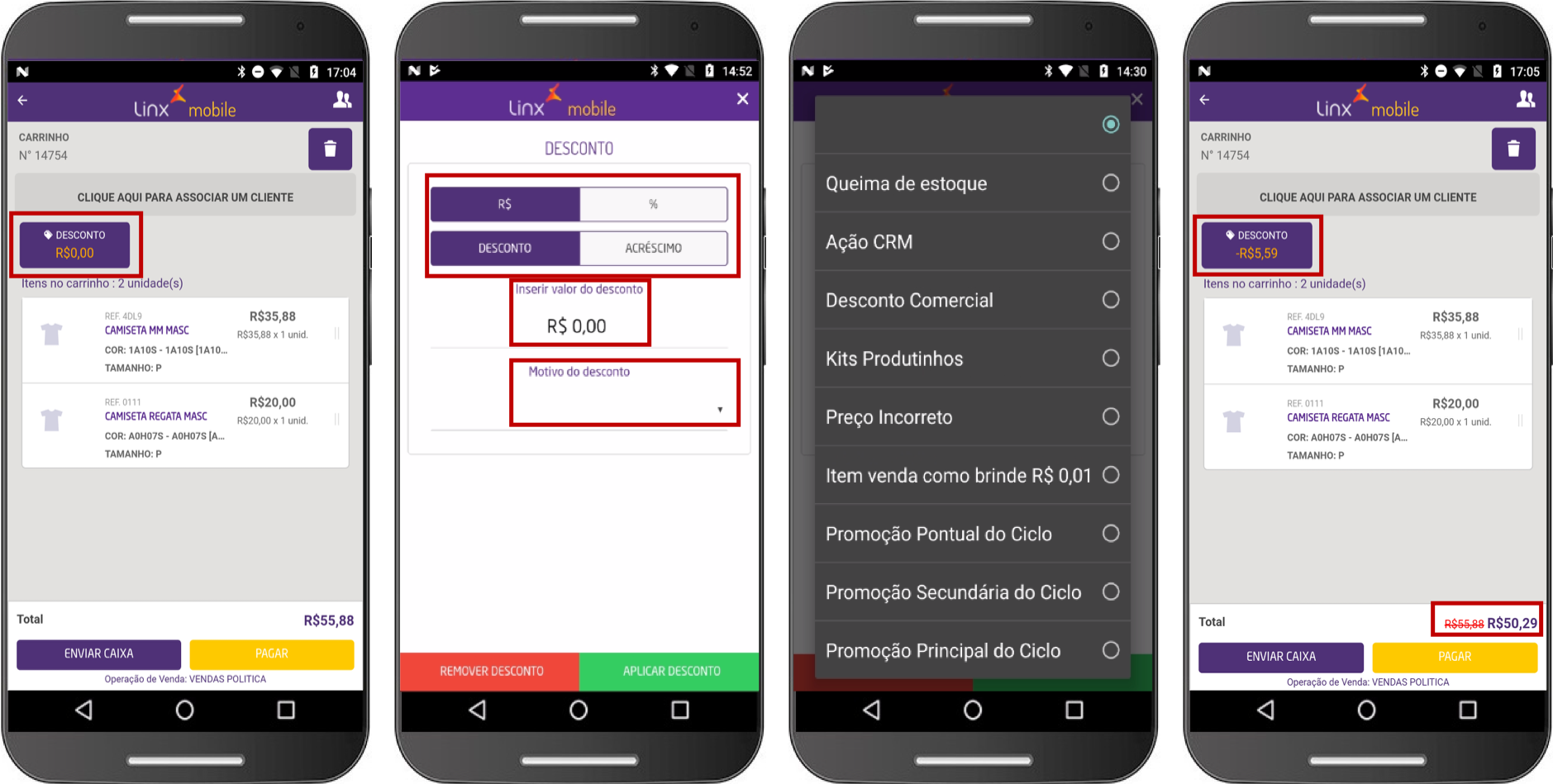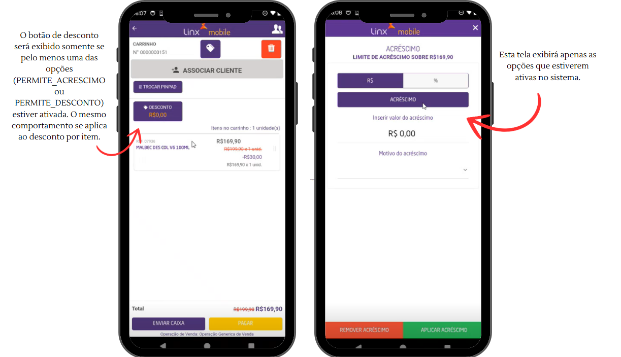 A opção Motivo do Desconto está disponível apenas para ambientes com Linx OmniPOS.