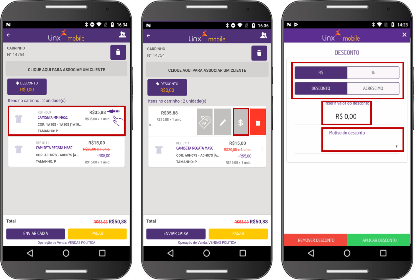 A venda com desconto é uma das possibilidades permitidas pelo Linx Mobile em que o lojista pode oferecer ao seu cliente um desconto de um determinado item ou do total de uma compra. Esse desconto pode ser realizado de duas maneiras: