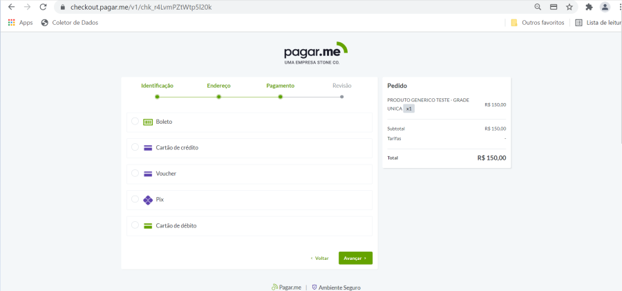 Assim que o link for enviado para o consumidor e ele acessar a plataforma, estarão disponíveis as formas de pagamento para que ele selecione aquela que for mais conveniente.