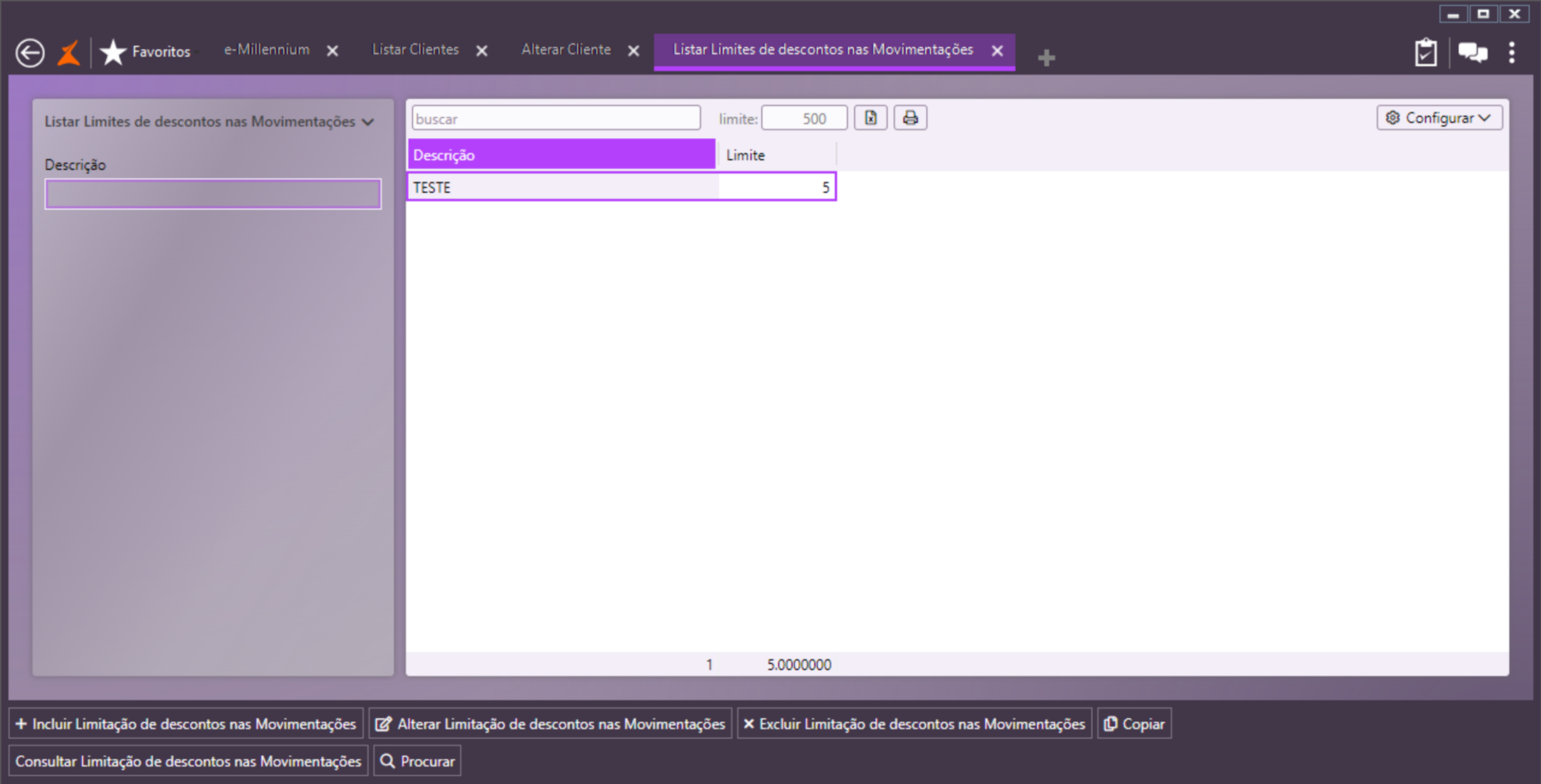 Quando o cliente possuir um limite de desconto de 5% e o usuário/vendedor possuir um limite de desconto de 10%, o e-Millennium permite que o usuário dê os 10% de desconto na venda para o cliente que possuía direito a somente 5%, pois, conforme o cadastro do sistema, o usuário tem este aval para aumentar.