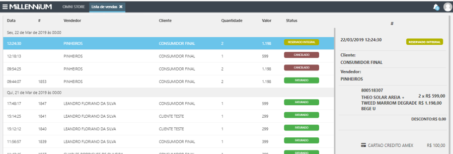 Acesse o menu principal do OMNI e na opção Lista de vendas, faça uma consulta para visualizar a operação que ficou pendente de finalização.