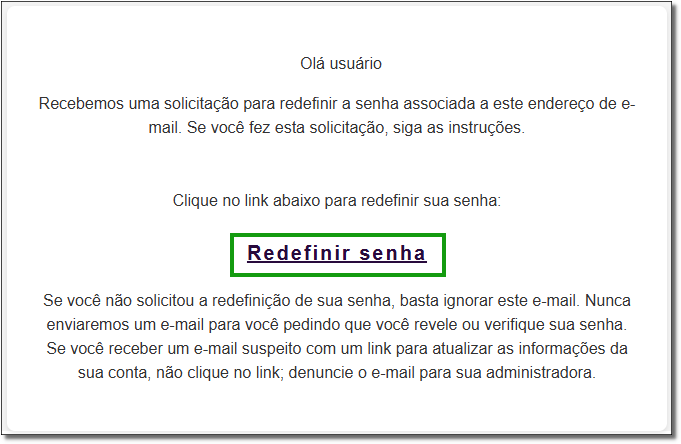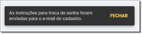 Após clicar em Alterar Senha, uma mensagem informando que as instruções para a troca de senha foram enviadas para o e-mail do cadastro é exibida.