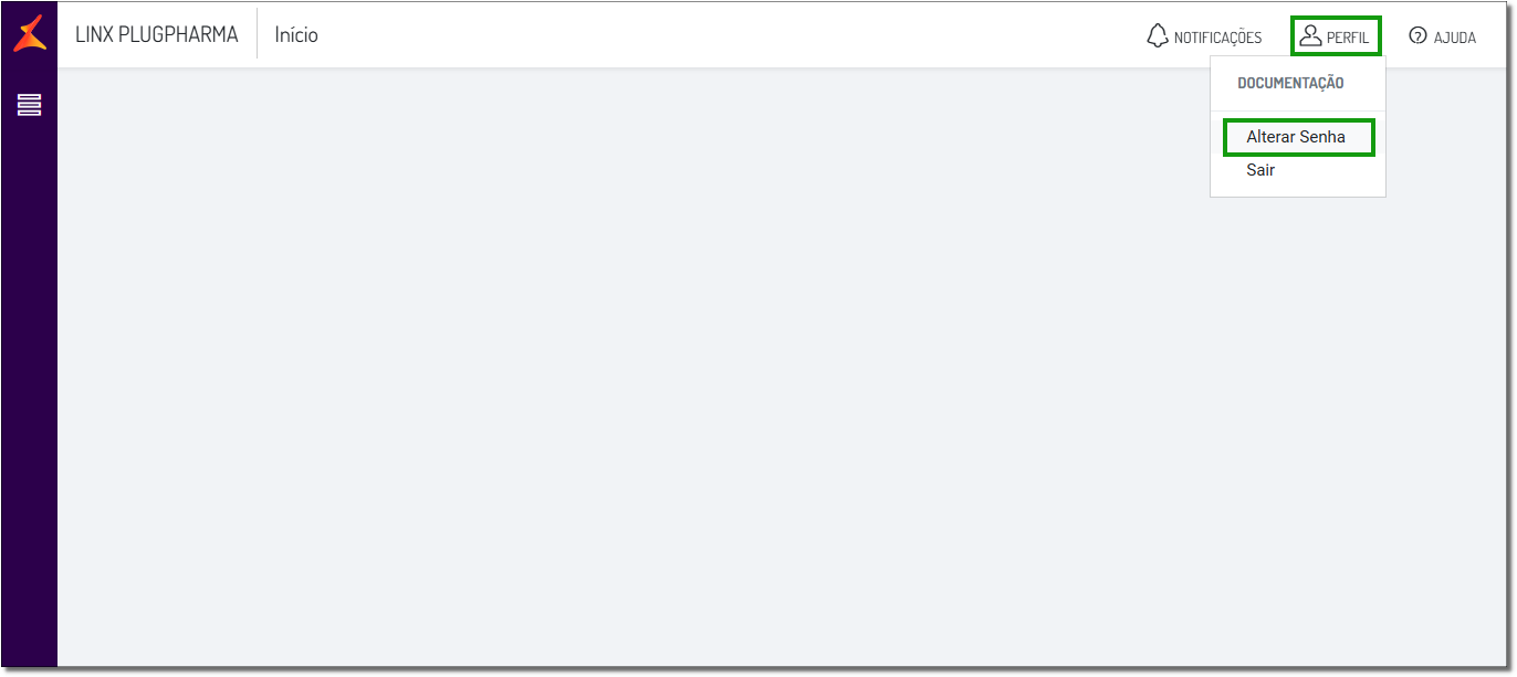 Após entrar vá na no menu Perfil→ opção Alterar Senha.