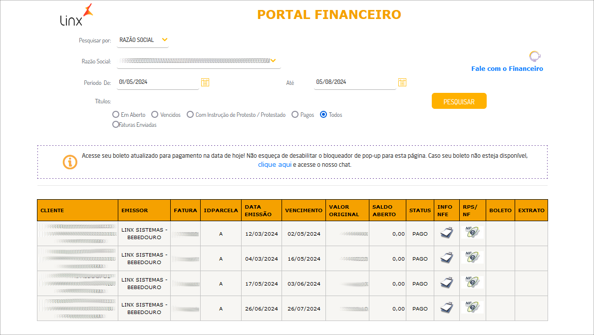 Visando fornecer acesso simplificado as lojas para acessarem os seus dados financeiros, foi criado o Portal Financeiro, que é uma forma prática e rápida para acessar esses dados.