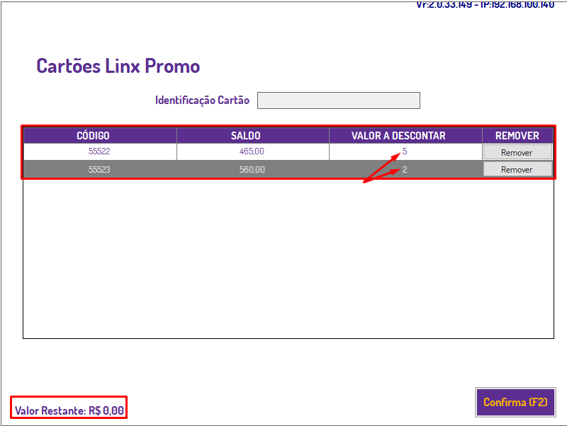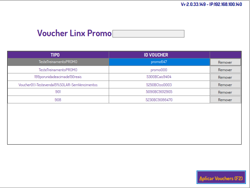 Então caso seja incluso mais de um voucher e apenas um deles for utilizado, nessa primeira fase não temos tratativas para essa situação, portanto a medida de contorno é remover manualmente vouchers que não foram aplicados.