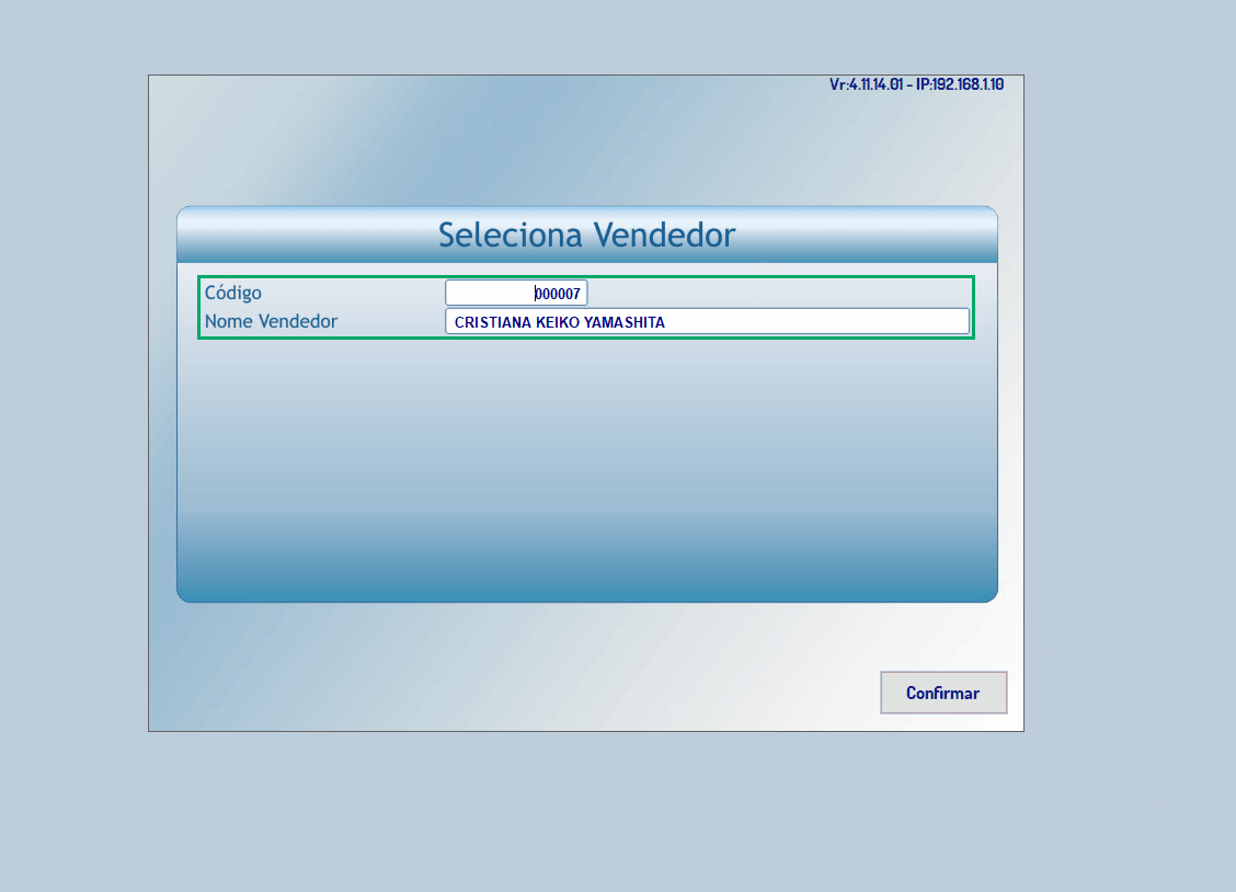 3. Irá abrir para que seja informo o vendedor e clique em Confirmar.