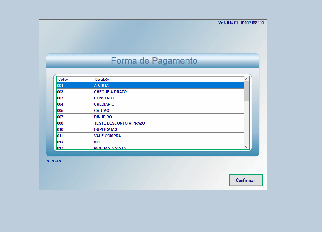 4. Selecione a Forma de pagamento e clique em Confirmar.